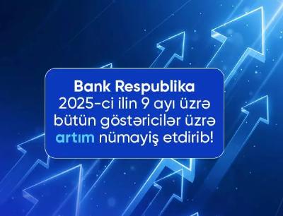 Bank Respublika 2025-ci ilin 9 ayı üzrə inamlı artım nümayiş etdirib