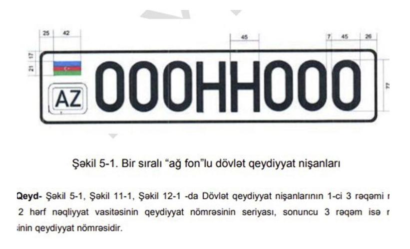 Qərara görə, AZS 599:2025 dövlət standartına əsasən, dövlət qeydiyyat nişanlarında rəqəm və hərflər arasındakı “defis” işarələri ləğv edilib.