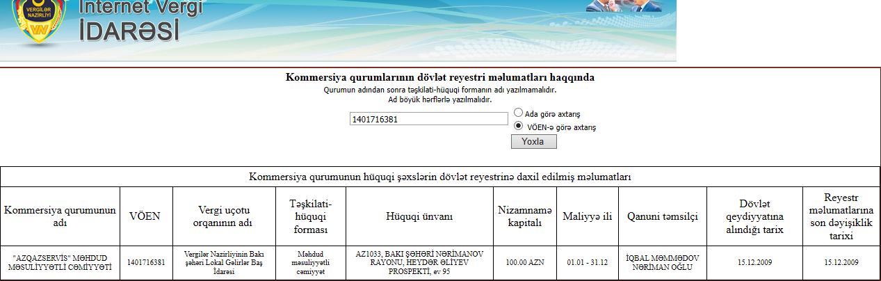 Dövlət qeydiyyatına alındığı tarix: 15 Dekabr 2009.