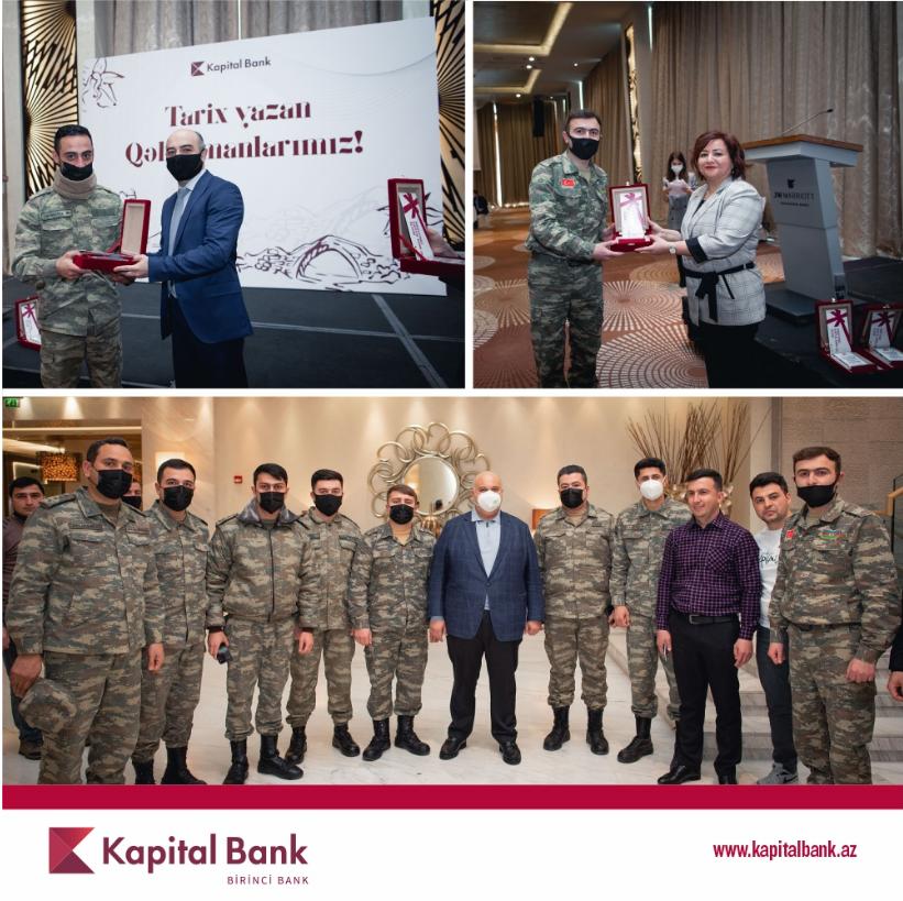 Hər bir təşkilatda olduğu kimi ölkənin birinci bankı olan Kapital Bank-ın əməkdaşları da müharibədə iştirak edib, qəhrəmanlıq nümayiş etdirərək torpaqlarımızın azad olunması uğrunda mübarizə aparıb. Bayram ərəfəsində Kapital Bank-ın İdarə Heyətinin sədri Rövşən Allahverdiyevin iştirakı ilə “Tarix Yazan Qəhrəmanlarımız” adlı tədbirdə Bankın 92 nəfər əməkdaşı iştirak edib.