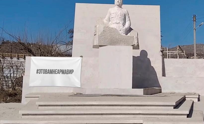 “Üzərində həştəq yazılmış bu əski parçasını başqa bir əski parçasının abidəsinin yanında asmağın məqsədi Armavir şəhər dumasının kommunist deputatı Aleksey Vinoqradovun hərəkətinə bir işarədir. O, 2019-cu ildə Njdenin şərəfinə quraşdırılmış lövhəciyi qara rəngə boyamaqla nəticədə onun sökülməsinə nail olub. Beləliklə, rusiyalı sülhməramlılara işarə verilib: bura sizin üçün Rusiya deyil, faşizm üzərində Zəfər Paradını faşistlərlə tərəfdaşlıq etmiş şəxsin abidəsinin kölgəsində keçirəcəksiniz”, – teleqram kanalı qeyd edir.