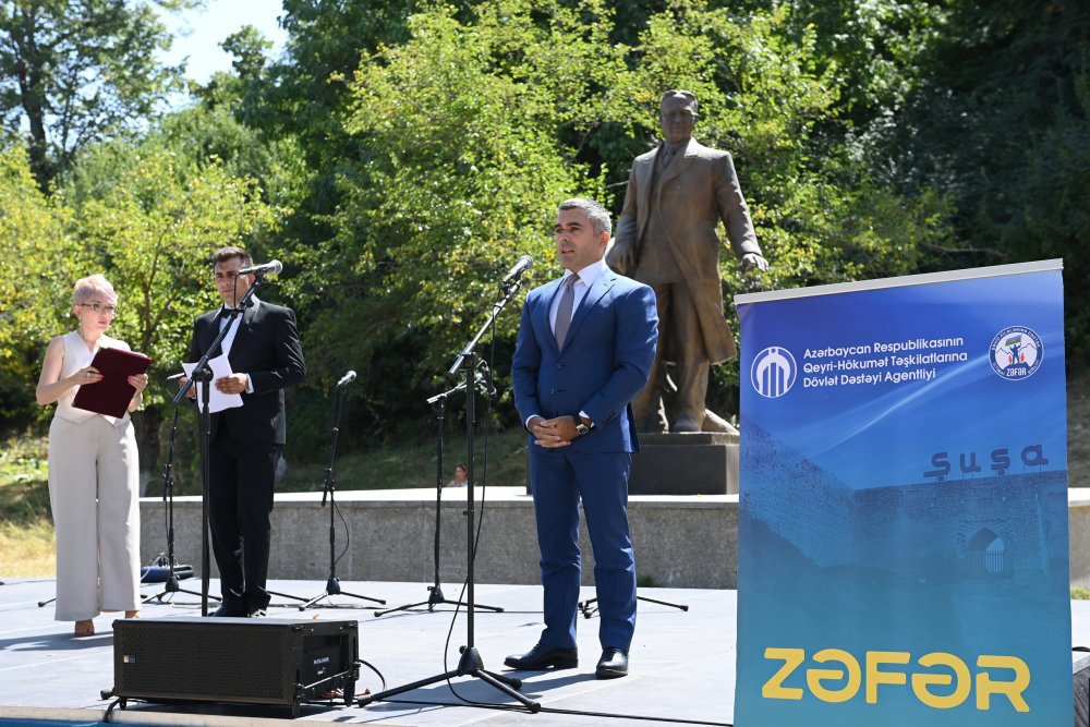 Açılış nitqi ilə çıxış edən “Zəfər” Şəhid Ailələrinə Dəstək İctimai Birliyinin sədri Sevinc Alızadə layihə haqqında geniş məlumat verib və layihənin ərsəyə gəlməsində hər kəsə öz təşəkkürünü bildirib. “Bank Respublika”nın İdarə Heyətinin sədri Tariyel İsmayılov çıxış edərək bu layihənin şəhid övladlarımızın inkişafındakı əhəmiyyətini yüksək qiymətləndirib və şəhid övladlarının Şuşa şəhərində təqdim etdikləri sənət nümunələrinin həyatında xüsusi yer tutacağını vurğulayıb.