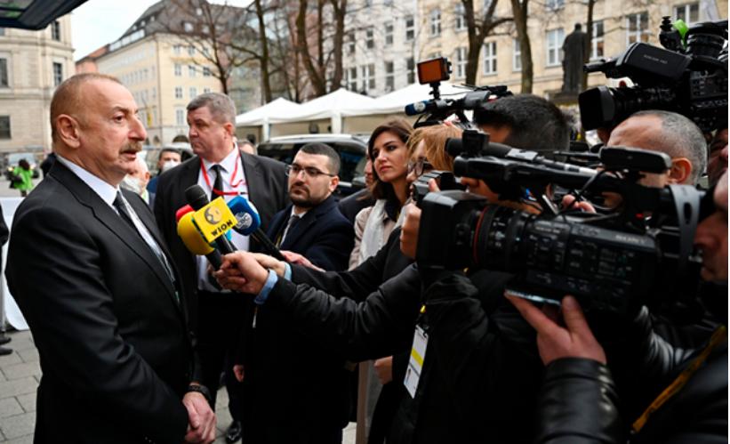İlham Əliyev Münhendə televiziya kanallarına müsahibə verdi - VİDEO