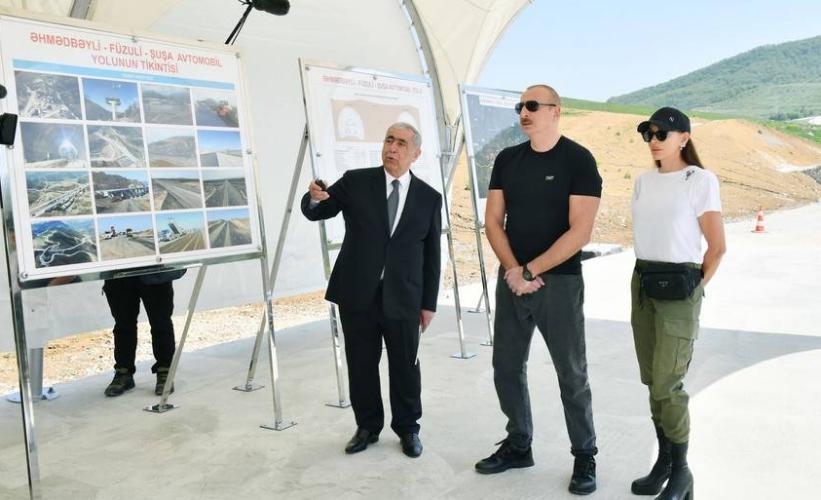 Prezident və xanımı Əhmədbəyli-Füzuli-Şuşa yolundakı işlərlə tanış olub