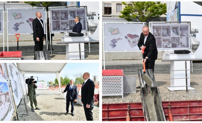 Sonra dövlətimizin başçısı Qarabağ küçəsində inşa olunacaq qeyri-yaşayış binasının təməli qoydu.