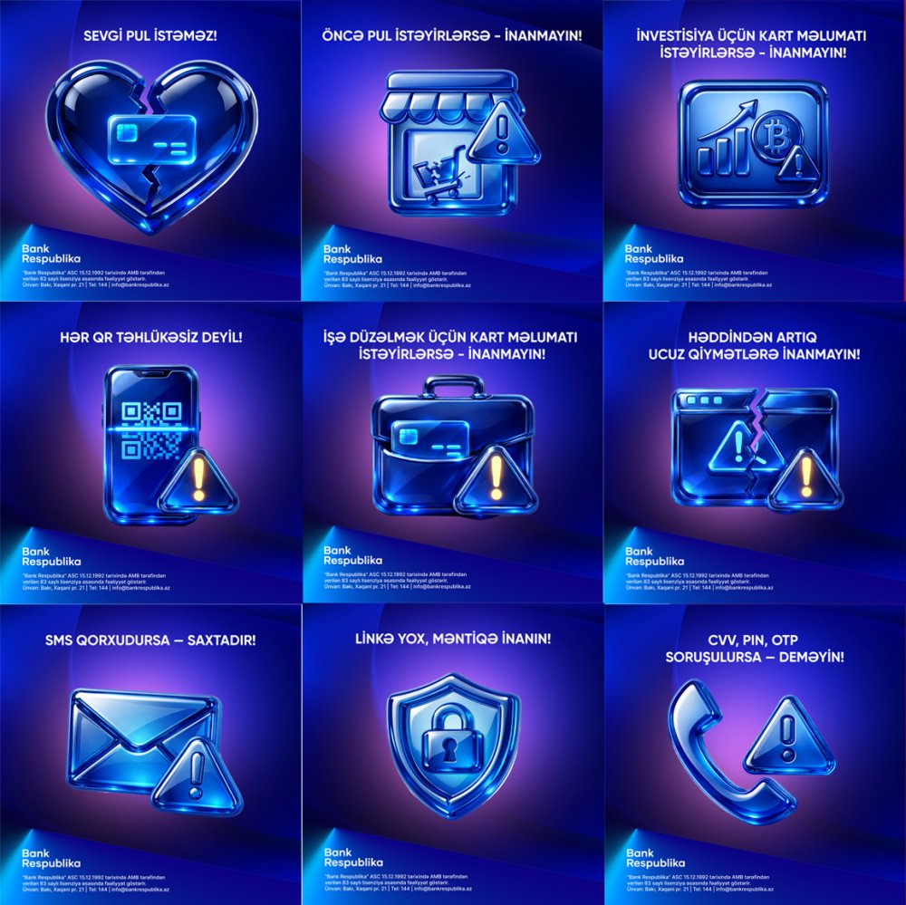 Rəqəmsal bank xidmətlərindən istifadənin genişlənməsi fonunda fırıldaqçılıq üsulları da daha hədəfli, daha inandırıcı və daha sürətli xarakter alır. Bank Respublika müştərilərinin maliyyə təhlükəsizliyinin qorunmasını prioritet hesab edərək, son dövrlərdə ən çox rast gəlinən risklər və onlardan qorunma yolları barədə maarifləndirici məlumatları diqqətə çatdırır.